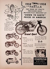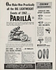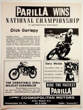 Motorcycle Collectibles Here are the current Parilla Motorcycle listings Parilla 175cc Competizione Bialbero 1955 Italy Edito Atlas Motorcycle Card $4.95 Parilla Speedster Touring 1957 Italy Edito Service Atlas Motorcycle Card $4.95 1957 Parilla Speedster Phantom Motorcycle Cosmopolitan Motors Print Ad PA $13.50 ITALIAN 50 cc MOTOM MORINI DUCATI PARILLA LAVERDA MOTORCYCLE ARTICLE. $6.06 PARILLA 250cc Trailmaster 1961 Italy Edito Service Atlas Motorcycle Card $4.75 Vintage Parilla Motorcycle Print Ad - 200cc Ramjet-99 Impala Philadelphia $13.50 Parilla MSDS Motogiro Competition 1957 Italy Edito Service Atlas Motorcycle Card $4.95 PARILLA 250cc Wildcat Scrambler 1963 Italy Edito Service Atlas Motorcycle Card $3.56 PARILLA 175cc COMPETIZIONE BIALBERO Motorcycles Atlas Ed. 1992 free shipping $6.95 Moto Parilla 1958 Motorcycle Ad Vintage Print Grand Sport Wildcat Italian Cycle $13.50 Parilla Cycle World Magazine Article Print Vintage Motorcycle 2-Page 2006 $13.50 1956 PARILLA 175 SPORTS RACER MOTORCYCLE - ROAD RACER- ORIGINAL 1996 ARTICLE $12.55 1961 Parilla 250cc Motorcycle Race Wins Pirelli Tires Ad Ephemera $13.50 British motorcyclist Olga Kevelos astride her Parilla motorcycle w- Old Photo $6.36 Parilla 1959 Vintage Original Magazine Ad Motorcycle Scooter Daytona Racing $13.50 Parilla logo 1 x 2" white on blue green mudguard toolbox vinyl sticker pair $16.00 Parilla 175 MSDS Grand Sport 1956 Italy Edito Service Atlas Motorcycle Card $4.95 Parilla 250cc Wildcat Scrambler 1963 Italy Edito Service Atlas Motorcycle Card $4.95 1964 Parilla Tourist 250 125 & 250 - Vintage Motorcycle Ad $12.60 Vintage 1962 Authorized Dealer's Guarantee Moto Parilla Motorcycles Cosmo $30.00 Classic Motorcycles (1993 InLine) Collector Cards $0.99 PARILLA 175 MSDS "GRAND SPORT" Motorcycles Atlas Ed. 1992 free shipping $6.95 MV125 PARILLA 125 RACING ULTRA LIGHTWEIGHTS 1953 MOTORCYCLE ARTICLE. $4.71 1964 Parilla Capri Motor Scooter Capriolo, Bianchi Motorcycle Vintage Ad $13.95 1961 CYCLE Magazine MOTO PARILLA Olimpia Motorcycle Road Test Article Ephemera $13.50 PARILLA MSDS MOTOGIRO Motorcycles Atlas Ed. 1992 free shipping $6.95 Dellorto round air filter cleaning instructions sticker Ducati Parilla Indian $20.00 1949 Parilla 250cc Corsa Bialbero Italy Motorcycle Photo Spec Sheet Info Card $2.36 Parilla Wildcat Scrambler Motorcycle Racing Vintage Magazine Ad 1960s B&W $13.50 Cycle Magazine 1963 Article Motorcycle Travel Photo Expedition Parilla Ewings $13.50 Parilla Levriere Motorcycle 1952 Italy Motor Show Display Historic Old Photo $6.36 Parilla logo 2 x 4" white on red burgundy gas petrol tank vinyl sticker pair $20.00 1960 Parilla Trailmaster Impala Wildcat Scrambler Motorcycle Scooter Print Ad $13.50 1960 Parilla Impala Clipper Speedster Motorcycle Vintage Print Ad $13.50 1992-93 InLine Classic Motorcycles Prototype 1962 Parilla #03 m5x $7.38 1958 Moto Parilla Grand Sport & More - Vintage Motorcycle Ad $12.60 1965 Parilla 125 250 Scrambler Motorcycle & Capri Scooter Original Ad $16.95 1992-93 InLine Classic Motorcycles Prototype 1962 Parilla #03 1md $1.69 1960 Parilla Trailmaster Impala 125 Wildcat Scrambler - Vintage Motorcycle Ad $12.60 1962 Parilla Motorcycles Ramjet Olimpia Tourist Superdart - 2-Page Vintage Ad $12.60 1992-93 InLine Classic Motorcycles Prototype 1962 Parilla #03 00ah $3.59 1961 Motosport Parilla 250 Motorcycle Vintage Print Ad $10.00 Vintage Parilla Motorcycle Racing Vest $335.00 1958 Parilla Wildcat Scrambler - Vintage Motorcycle Ad $12.60 1965 Benelli Sprite, Cobra, Fireball Parilla Rare Vintage Motorcycle Sales Flyer $4.99 1992-93 InLine Classic Motorcycles Prototype 1962 Parilla #03 0h1 $3.58 Moto Parilla 350 cc twin parts catalogue & price list $9.00 1957 Parilla Speedster Lusso Veloce 175cc Italy Motorcycle Photo Spec Info Card $2.36 Moto Parilla Slughi 99 (Ramjet) & (Impala) 1959 Spare Parts Catalogue & Price $9.00 Parilla 1950 350 Twin Cam Roland Schnell Edito Service Atlas Motorcycle Card $4.95 Parilla 1957 MSDS Motogiro Edito Service Atlas Motorcycle Card $4.95 1959 Moto Parilla 200cc Super Speedster & Ramjet-99 Vintage Motorcycle Ad $12.60 Parilla Motorcycle PRINT AD - 1965 ~Wildcat, Tourist, Olimpia, Scrambler, Capri $9.99 1959 Parilla Ramjet Greyhound Scooter Cosmopolitan Motors Vintage Motorcycle Ad $12.60 1964 Parilla Tourist & Scrambler Motorcycle Original Ad $16.95 Parilla 250cc Supersport 1948 Italy Edito Service Atlas Motorcycle Card $4.75 1965 Parilla Olimpia Capriolo Antelope Guardian Capri - Vintage Motorcycle Ad $12.60 PARILLA 175 MSDS "Grand Sport" 1956 Italy Edito Service Atlas Motorcycle Card $4.75 1959 Moto Parilla Super Speedster 200cc & Ramjet-99 - Vintage Motorcycle Ad $12.60 1962 Parilla 250 Grandsport Road Racer / Tony Woodman - Vintage Motorcycle Ad $12.60 Parilla Motorcycle PRINT AD - 1965 ~ Wildcat, Tourist, Olimpia, Scrambler, Capri $9.99 1965 Parilla Wildcat Scrambler Bianchi Capri Scooter - Vintage Motorcycle Ad $12.60 PARILLA 175cc Grand Sport 1959 Italy Edito Service Atlas Motorcycle Card $3.56 PARILLA Speedster 1957 Italy Edito Service Atlas Motorcycle Card $4.75 Vintage Authorized Cosmopolitan Dealer Guarantee Benelli Capri Bianchi Parilla $30.00 Parilla Motorcycle PRINT AD - 1963 ~~ Bianchi Gardena, Agusta Chicco scooter $9.99 PARILLA 175cc 1955 Italy Edito Service Atlas Motorcycle Card $3.56 1960 Parilla Ramjet Scrambler Impala Dart Speedster Motorcycle Vtg Print Ad $13.50 1962 Parilla Scrambler Olimpia Wilcat Trailmaster Motorcycle Original Print Ad $16.95 1959 Parilla Impala Super Speedster Clipper Motorcycle Magazine Print Ad $13.50 1992-93 InLine Classic Motorcycles Prototype 1962 Parilla #03 0q3 $3.47 1959 Parilla Super Speedster & Ramjet 99 Motorcycle Original Ad $16.95 1955 Parilla 175cc Competizione Bialbero Race Motorcycle Photo Spec Info Card $2.36 Moto Parilla 175 Speedster & 350 Clipper leaflet Prospekt, 1958 $16.95 1956 Parilla 175cc MSDS Grand Sport Italy Motorcycle Photo Spec Sheet Info Card $2.36 1962 Parilla Scrambler, Trailmaster,
