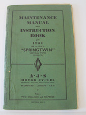 Motorcycle Manuals Here are the current AJS manuals and literature listings 1957-64 Matchless AJS Motorcycle Service Workshop Manual Book 250 350 500 650cc $39.95 AJS Motorcycle Sales Literature 1952 Original Brochure $19.00 AJ's Workshop Manual 350cc Single Cylinder models 500cc Twin Cylinder Models $5.00 original 1959 AJS spares list singles and twins $24.15 1952 AJS Motorcycle Spares List Parts Catalog Book 500cc Twin O.H.V. Model 20 $34.95 1952 AJS Motorcycles Maintenance Manual CM-19 350 500cc Single Cylinder $37.19 1941-1957 AJS Master Spares List #314 $14.99 1952 AJS Motorcycle Spares List Parts Catalog Book 350cc 16MS 16MC 500cc 18S 18C $34.95 1958 Motorcycle Service Manual Book Dunlop Tire Ariel AJS Triumph Norton BSA $16.95 1956 AJS Motorcycle Spares List Parts Catalog 500cc 600 Twin O.H.V. Model 20 30 $34.95 1949 Vintage AJS Motorcycles Original Sales Brochure $15.00 AJS ~ 16MS & 18S Instruction Manual ~ 1957 ~ Reprnt $27.88 Tackle Motorcycle Sport AJS BSA Norton Triumph Vincent Motorcycle Manual Book $29.95 original 1958 AJS spares list singles and twins $24.15 original 1946 AJS spares list model 16 350cc model 18 500cc $24.50 original 1959 AJS Sales brochure poster $39.50 BRITISH RACING MOTORCYCLE BOOK VINCENT AJS NORTON JAP VELOCETTE BSA MATCHLESS $29.99 1951 AJS 500 cc "SpringTwin" Vertical Twin #314 $14.99 Vtg AJS SPRINGTWIN Motor Cycle Model 20 500cc Maintenance Manual & Instruction $45.00 1959 Motorcycle Manual Book BSA Norton Triumph AJS Villiers Lucas Amal Whitworth $29.95 1953 AJS Motorcycle Spares List Parts Catalog Book 350cc 16M 16MC 500cc 18 18C $34.95 1967 AJS hybrid 750 sales brochure model 33 33CSR $17.00 BUCO 1967 MOTORCYCLE ACCESSORIES CATALOG BSA TRIUMPH ARIEL HONDA NORTON AJS $22.00 original 1952 AJS spares list Model 20 500cc twin "Springtwin" $24.15 original 1948 AJS spares list model 16 350cc model 18 500cc $24.15 1951 AJS Motorcycle Spares List Parts Catalog Book 350cc 16M 16MC 500cc 18 18C $34.95 VETERAN & VINTAGE MOTORCYCLE BOOK VINCENT AJS ARIEL TRIUMPH NORTON BSA VELOCETTE $29.99 AJS & Matchless Twin Motorcycles 1955-1965 Service & Overhaul Manual Vintage $21.00 original 1953 AJS spares list Model 20 500cc twin "Springtwin" $24.15 original AJS Matchless master spares price list Cooper Motors 1956 $17.15 original 1951 AJS spares list Model 20 500cc twin $19.50 original 1951 AJS spares list model 16 350cc model 18 500cc $24.15 1942 Motorcycle Manual Book BSA Norton Triumph AJS Vincent Villiers Lucas Amal $29.95 1957 AJS Motorcycle Spares List Parts Catalog 350cc 16MS 16MCT 500cc 18S 18CS $34.95 1956 AJS Motorcycle Spares List Parts Catalog 350cc 16MS 16MCT 500cc 18S 18CS $34.95 1969 AJS model 37A-T trials bike sales brochure $17.00 1954 AJS 16mn, 16 ms, 16 mc, 16 mcs, 18, 18 s, 18 c, 18 cs #314 $14.99 AJS Matchless Motorcycle Manual Lucas Electrical Parts Catalog literature Lot $29.00 original 1950 AJS spares list Model 20 500cc twin $24.15 original 1960 AJS spares list singles and twins $24.15 original 1947 AJS spares list model 16 350cc model 18 500cc $24.15 1970 AJS Stormer Y40 Y50 sales brochure Printed in England VG codition $20.00 Vintage Motorcycle Service Guide Ajs Matchless Singles 1957 - 1966 $29.95 original 1957 AJS spares list Model 20 500cc Model 30 600cc twin "Springtwin" $24.15 AJS Motorcycle Sales Literature 1952 Original Brochure $20.00 AJS Stormer 250 370 410cc Motorcycle Workshop Manual $25.78 AJS MOTORCYCLE 1971 STORMER Y SERIES PARTS PRICE LIST ORIGINAL 2 FOLDERS $19.98 1965 AJS Matchless Norton Motorcycle Manual Lucas Electrical Part Catalog G3 G80 $29.95 AJS MOTORCYCLE HISTORY BOOK RACING TRIALS PORCUPINE TT BIG PORT BOY RACER 1969 $24.99 1963 AJS Matchless Motorcycle Manual Lucas Electrical Parts Catalog G80 G3 16 31 $29.95 AJS & MATCHLESS 20-30-G9-G11 TWINS 1948-1956 - FLOYD CLYMER $29.95 AJS Motorcycle Sales Literature 1951 Original Brochure $9.00 original 1950 AJS spares list model 16 350cc model 18 500cc $24.15 AJS Motor Cycles 1953 Spring & Rigid Frame - Maintenance Manual and Instruction $19.95 original 1955 AJS spares list model 16 350cc model 18 500cc $24.15 BRITAINS RACING MOTORCYCLES VINTAGE BOOK 1952 AJS HRD BSA NORTON TRIUMPH RUDGE $24.99 original 1953 AJS spares list model 16 350cc model 18 500cc $24.15 VINTAGE KEIG TT MOTORCYCLE RACING BOOK SET NORTON AJS TRIUMPH GP VELOCETTE HRD $39.99 AJS Springtwin Model 20 1951 - Maintenance Manual and Instruction Book for 1951 $19.95 AJS Motorcycle Sales Literature 1951 Original Brochure $19.00 1970 AJS Stormer Y40 Y50 sales brochure Printed in England VG codition $39.95 original 1956 AJS spares list Model 20 500cc Model 30 600cc twin "Springtwin" $24.15 1950 1951 1952 AJS Repair Maintenance 350 500 Book Manual Motorcycle $30.00 March 28 1963 Motorcycle Magazine Matchless AJS Trojan Yamaha L14297 $5.99 original 1954 AJS spares list Model 20 500cc twin "Springtwin" $24.15 original 1956 AJS spares list model 16 350cc model 18 500cc $24.15 August 18th 1960 Motor Cycling AJS Model 31 CSR 650cc Sports Twin L13637 $5.99 AJS Motor Cycles 1947 Spares List - AJS 1947 - 350 Model 16M and 500 Model 18 Ed $15.95 Motorcyclist Magazine Jan 1947 Royal Enfield AJS Indian Harley-Davidson B12999 $9.99 Vintage Aug 1985 Classic Bike Magazine AJS Ariel BSA Triumph Norton Morini B8217 $1.49 MATCHLESS MOTORCYCLE 350 500 HEAVYWEIGHT SINGLES BOOK MANUAL 1939-1955 AJS BMS $29.99 AJS 1950 500 SpringTwin Model 20 Parts Spares List Catalog $24.99 FAMOUS VINTAGE RACING MOTORCYCLE BOOK TRIUMPH AJS VINCENT MV GILERA BROUGH BMW $24.99 AJS PARTS CATALOG, SPARES LIST FOR 1950 350CC AND 500 CC SINGLES $34.95 AJS & MATCHLESS 1945-56 RIGID & SPRING-FRAME SINGLE CYLINDER WSM & PARTS-CLYMER $29.95 AJS 1953 Spring Frame and Rigid Models - AJS Spares List for 1953 350cc and 500c $16.95 AJS ~ 1953 Single Cylinder ~ Maintenace Manual & Instruction Book ~ Reprnt $27.88 original 1957 AJS spares list model 16 350cc model 18 500cc $19.50 AJS Matchless Owners Club Matchless News 1994 Member Handbook $24.99 A.J.S AJS 1952 5