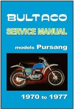 Motorcycle Manuals Here are the current Bultaco manuals and literature listings BULTACO Motorcycles Service Manual - All Models Since 1969 - HDW Ent. Ahrma $165.00 Bultaco Alpina 250 350 models 212 213 PDF Parts Manual 100 Pages CD Disk English $18.00 Bultaco Provisional Factory 1974 Pursang Parts Catalog List Book 144.32-P066 $59.99 Bultaco Original Factory 1969 Matador Mk3 Parts Catalog List Book Manual $69.99 Vintage Bultaco Dealer/Service Repair Shop Flat Rate Time Manual With Binder $99.99 RARE Bultaco Matador MK3 MK 3 MODEL 26 Original Owners Manual TRIALS SHERPA T $60.00 OEM BULTACO SHERPA T 350 / 250 SALES BROCHURE - new! original not a reprint $5.95 Clymer Publications Bultaco Service Repair Handbook 125-250cc All Models $65.00 OEM BULTACO ALPINA 350 / 250 SALES BROCHURE - new! original not a reprint $5.95 Bultaco Owner's Parts List/Schematic Manual/Catalog Sherpa T 250/350 1978-1980 $49.99 OEM BULTACO SHERPA T 350 SALES BROCHURE - new! original not a reprint $5.95 Vtg BULTACO Motorcycles Service Manual Part VII 350-360 MK I & MK II Engines $79.99 October 1971 Cycle Magazine Bultaco Alpina $18.00 Bultaco Original 5 Speed Models 100-250cc 23-76 Series Parts Catalog List $89.99 Bultaco Original Factory 1970 El Tigre Motorcycle Catalog Parts List Book $99.99 Bultaco Original Factory 115-152 Series 5 Speed Parts Catalog Book $129.99 1969 Bultaco Matador 250 Mk3 4-page brochure Bonus: dealer spec & pricing $44.95 Bultaco Matador MK2 MK 2 Original Owners Manual - Binding is bad - SEE PICS $74.99 1960s-77 Bultaco Motorcycle Service Manual Book 125cc 370cc Pursang Sherpa Tigre $79.95 1977 BULTACO Motorcycles Service Manual 5 Speed $100.00 Ride It Motorcycle Trials Book Manual Bultaco Ossa Montesa Gas Gas Sherco $59.95 BULTACO DEALER SERVICE MANUAL 1969 MODELS $175.00 RARE Original Bultaco Owners Manual Alpina 250 350 First Edition $300.00 1975 Bultaco Factory Pursang 134-135. 136-144 Parts Catalog Book 134.32-117-1 $75.00 BULTACO Workshop Manual Alpina 350 & 250 1970 1971 1972 1973 1974 1975 1976 1977 $44.95 bultaco Tiron front fender brackets. $100.00 VINTAGE BULTACO PURSANG 200 250 360 125 PARTS MANUAL 134 135 136 144 PART LIST $50.00 Bultaco Lubito Motorcycle Brochure 100cc B15679 $17.99 Bultaco Parts Manual Book ALPINA 250 USA (Mod.212A) Printed 1977 $19.50 Bultaco Original Factory 1971 Campera Parts Catalog List Book Manual 21.32-117-1 $59.99 Bultaco Original Provisional 1973 Pursang Parts Catalog List 120.32-P117 $59.99 Bultaco Original Factory 4 Speed 100-250cc Parts Catalog List Manual w/ Binder $129.99 Bultaco Original Factory Parts Catalog 5 SPEED Models 80-107 $50.00 BULTACO Workshop Manual Sherpa T 350 250 1975 1976 1977 & 1978 FACTORY Service $44.95 VINTAGE 1970 BULTACO EL TIGRE PARTS MANUAL & NUMBER LIST All pages no tears $55.00 BULTACO Brochure Pursang 250 MK9 1976 Sales Catalog REPRO $14.95 BULTACO Brochure Matador SD MK4 MkIV 1971 1972 1973 VMX Sales Catalog REPRO $14.95 1960s-77 Bultaco Motorcycle Service Manual Book 125cc 370cc Pursang Sherpa Tigre $79.95 Bultaco Original 5 Speed 80-107 Series Incl. 73 Tiron Parts Catalog List Book $99.99 Bultaco Original Factory Provisional 1974 Alpina Parts Catalog List 137.32-117 $59.99 Vintage BULTACO ~1976 Astro Sales Brochure 250/360cc $34.95 BULTACO Workshop Manual Pursang 350 250 1970 1971 1972 1973 1974 1975 1976 1977 $39.95 Motorcyclist Magazine April 1972 Bultaco Indian Rokon Harley Daytona B12979 $5.99 Bultaco Dealer Spare Parts Price List dated January 1979 Original $25.52 SAMMY MILLER WILL TO WIN SIGNED 1976 MOTORCYCLE RACING BOOK ARIEL BULTACO TRIALS $39.99 OEM VINTAGE 1976 HONDA TL250 OWNER’S MANUAL TRIALS TL 125 MONTESA OSSA BULTACO $85.00 BULTACO MONTESA OSSA Service Shop Tune Up Manual 100 125 175 250 350_1965-1972 $74.99 1977/78 Bultaco Streaker 74cc/125cc 1 Page Sales Brochure $34.95 1966 Bultaco Motorcycle Sales Brochure 175cc Campera B15685 $11.99 Bultaco Service Repair Handbook: 125-250cc All models Vintage Motorcycle Manual $65.00 BULTACO SHERPA PARTS CATALOG VINTAGE $40.00 Original Bultaco Owners Manual Alpina 125 350 Model 115 116 $39.99 Bultaco Original Factory 1969 El Bandido Motorcycle Catalog Parts List $69.99 BULTACO Brochure Sherpa S 200 175 & 125 MK2 1970 1971 & 1972 Sales Catalog REPRO $14.95 Vintage Original BULTACO ~1972 6 Page Sales Brochure Line Up $59.95 Cycle World October 1972 Kawasaki Big Four Yamaha TX750 Bultaco 350 L14694 $5.99 1966 Bultaco Matador 250 Motorcycle Stump Jumper on/off road Brochure $14.00 Bultaco 360 24 Hours 1969 Motorcycle Card Atlas Spain $8.25 Bultaco Factory 1971 El Montadero MK2 Parts List Catalog Manual 81.32-066 $69.99 CLYMER BULTACO MANUAL 125-370CC SINGLES THROUGH 1977 $70.00 VINTAGE 1970 BULTACO SHERPA PARTS MANUAL & NUMBER LIST Model 27 49.32-117-2 $55.00 BULTACO Brochure Alpina 350 250 175 125 Trials 1971 1972 1973 1974 Catalog REPRO $14.95 1965 1966 1967 BULTACO MATADOR 250 MK2 OWNERS MANUAL HAND BOOK RARE!!! $34.00 Bultaco Alpina Owner's Manual - 2nd Edition - ENGLISH LANGUAGE $175.00 Bultaco 1969 Original Provisional El Montadero Parts Catalog List 70.32-P066 $64.99 BULTACO Brochure Frontera MK11 370 & 250 1978 & 1979 214 215 Sales Catalog REPRO $14.95 1969 Bultaco Pursang 350 Astro 5-Speed Motorcycle Shop Service Repair Manual xz $419.30 Bultaco Factory 1974 Alpina 115-116 Parts Catalog List Manual 116.32-117 $69.99 Motorcyclist Oct 1973 Yamaha 250 Trailer Bultaco 325 Rokon RT-340 Suzuki B12591 $5.99 Cycle Guide Magazine July 1967 Kawasaki Yamaha Bultaco Honda B13915 $5.99 November 1969 Cycle World Harley-Davidson Sportster Bultaco 360cc L14150 $5.99 Bultaco Original Factory Pursang Motorcycle Catalog Parts List $59.99 VINTAGE BULTACO PURSANG 200 350 360 PARTS MANUAL 134 135 136 PART NUMBER LIST $50.00 BULTACO ALPINA CATALOG PARTS BOOK MOD 212-213 BULTACO MOTORCYCLE CATALOG $35.00 BULTACO Brochure Sherpa T 250 350 Trials 1974 Sales Catalog REPRO $14.95 Vintage Aug 1971 CYCLE WORLD Magazine BSA 650 Lightning Bultaco Honda L5249 $5.99 Vtg Bultaco Motorcycle